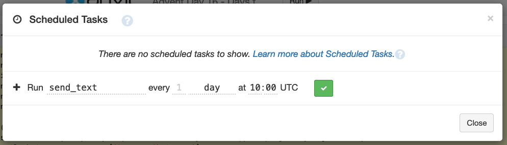 We want to send a Christmas SMS once a day to everyone who’s registered for our countdown. We’ll use Scheduled Tasks to do this.
