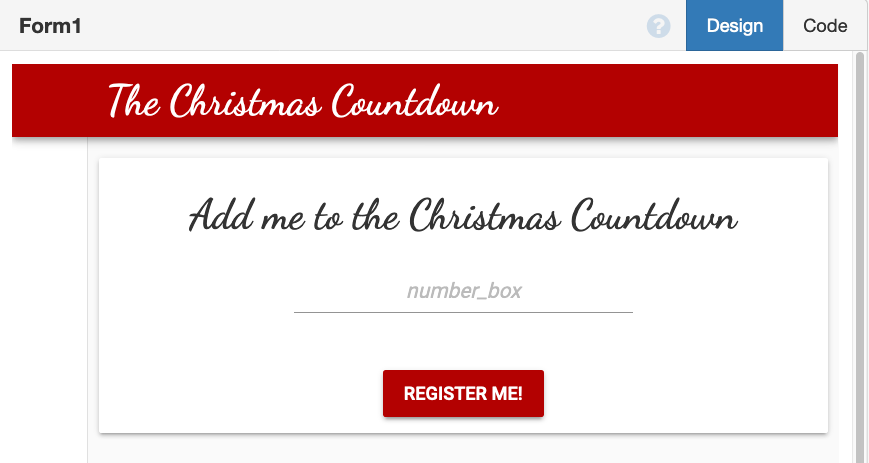 anvil.server.call('store_number', number)We’ll call this function from the client when the ‘Register’ button is clicked.