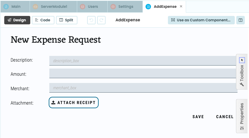 With the new Anvil Editor, you can view your client code and UI design side-by-side. You can now write Python code and tweak your UI without the need to switch back and forth. You can now also run your app in split view so you can build your app and view your live app in the same screen.