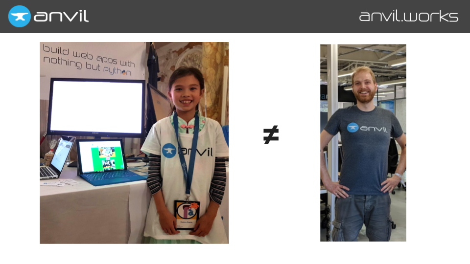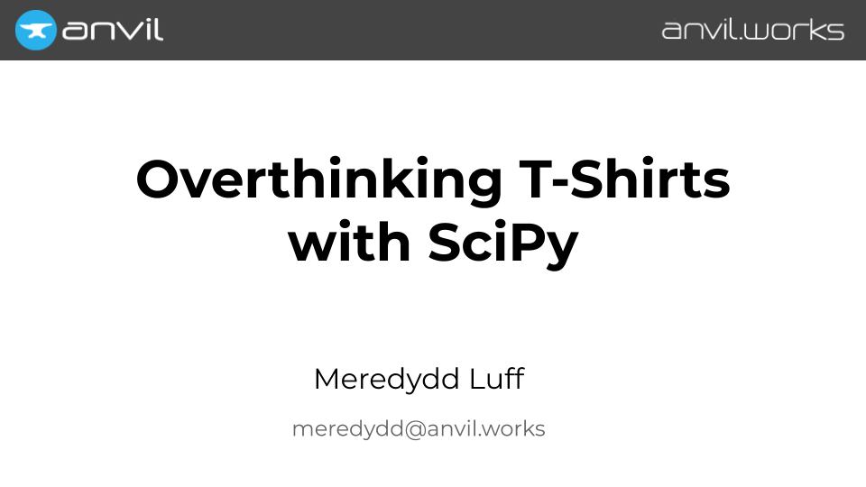 Hi! My name is Meredydd, and I run a startup called Anvil. We make tools for building full-stack web apps with nothing but Python, and we are sponsoring PyCon again this year. It’s great to be back!