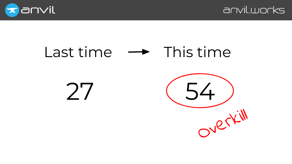 Whereas for the men’s large shirts, we need 36 – that’s only 33% more than last time.