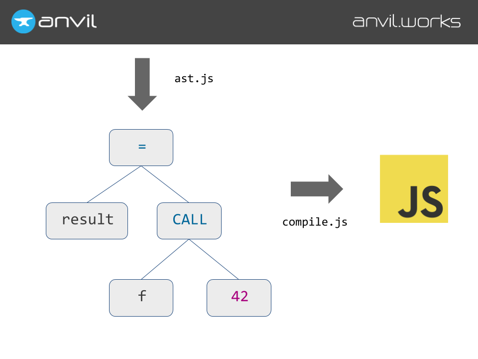So, when we’re compiling the AST, wherever we’re compiling a function call, we generate Javascript code that calls the function, and looks at the return value, and says, “is it a Suspension?”. Because if it returned a Suspension, we’re blocking - and I’m going to have to suspend myself. We save all our variables and temporary values, our exception state, and where we are in the function, and then we return our own suspension with all that information in it.