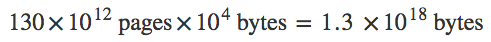 or 1.3 Exabytes of data. You’d need one million 1 Terabyte hard disks to store that much data, and you couldn’t possibly scan it in time to answer a query.