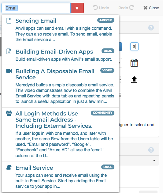 Use the ‘How do I…’ search box in the top-right corner of the Anvil editor, or visit the Learning Centre or Knowledge Base pages for a bigger version.