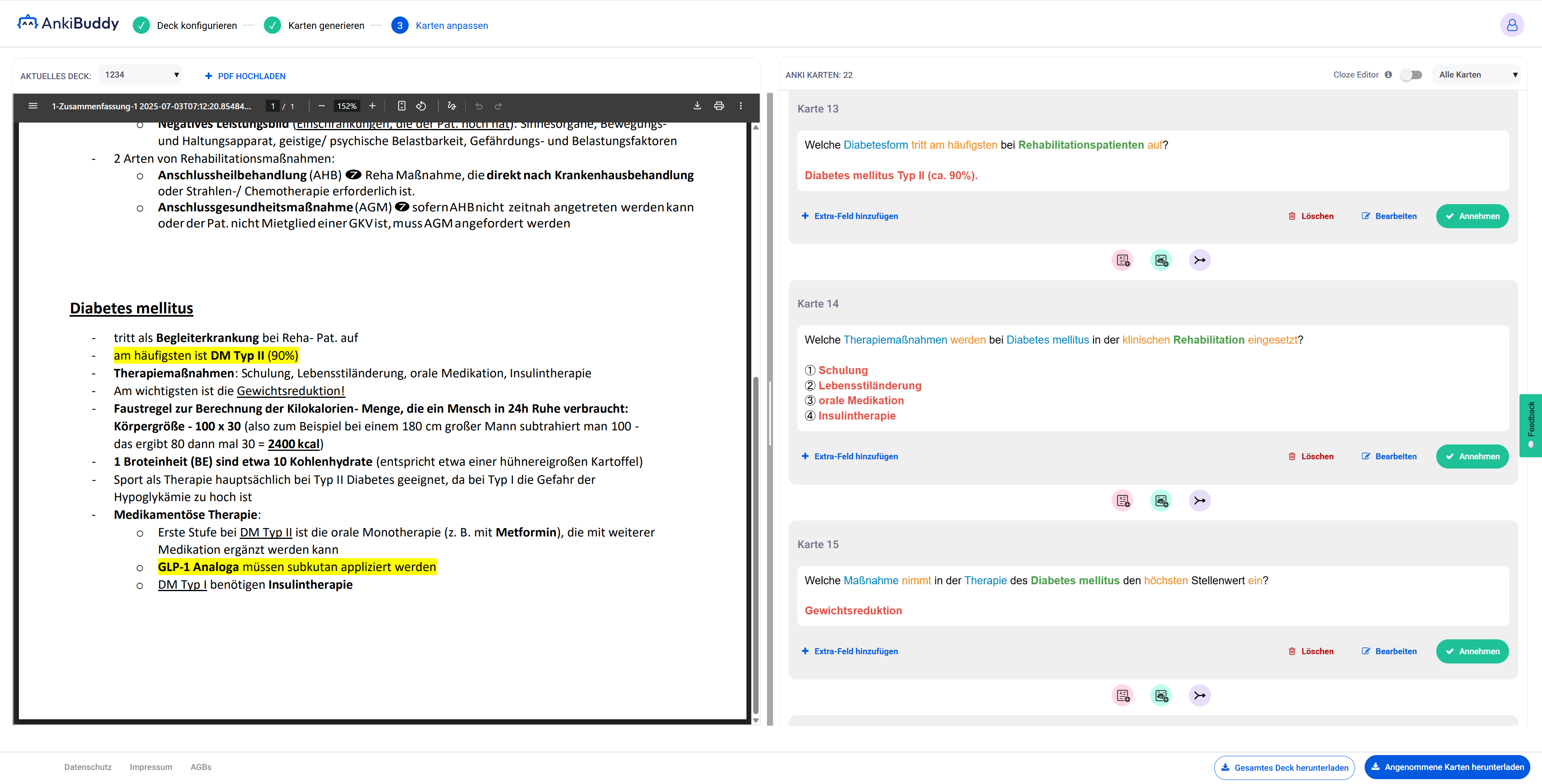 AnkiBuddy is a web-based platform that lets medical students upload their study materials and receive well-structured Anki flashcards within minutes. The platform: