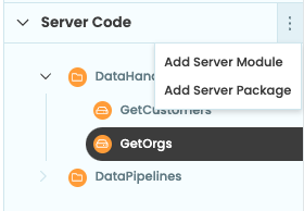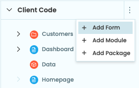 Or use the dropdown menu next to a Form or Package to add things inside it: