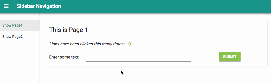 In this example app there are two different pages, each of which is a different Form. There’s a counter on each Form to display the number of times the user has clicked a link.
