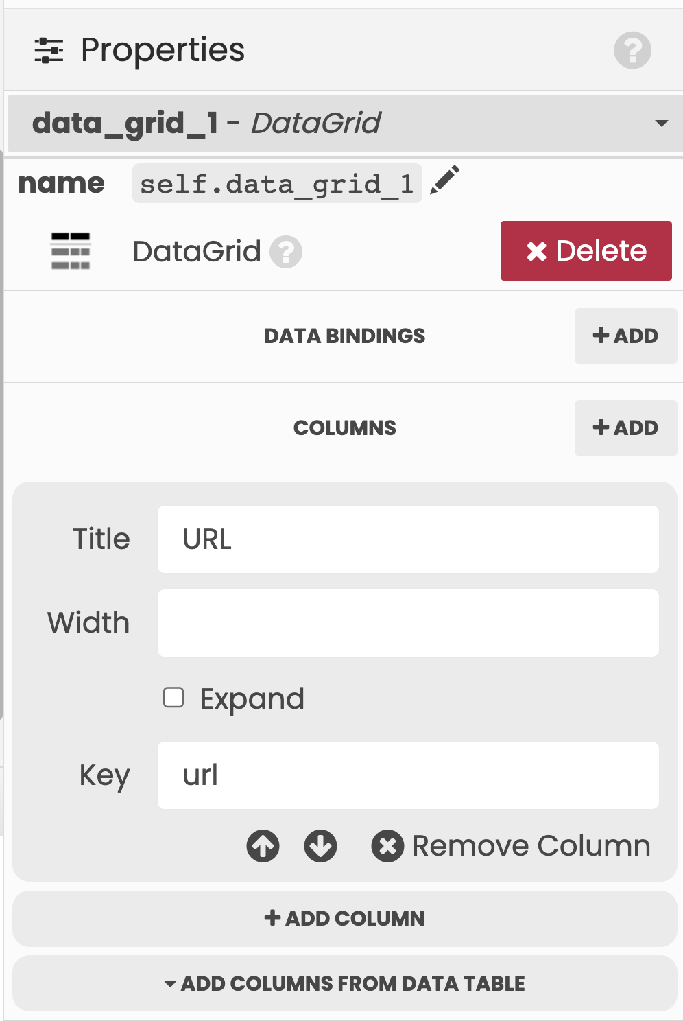 (Optional extra: In our example app, we’ve used Links in the Data Grid to link to the URL of the page.)
