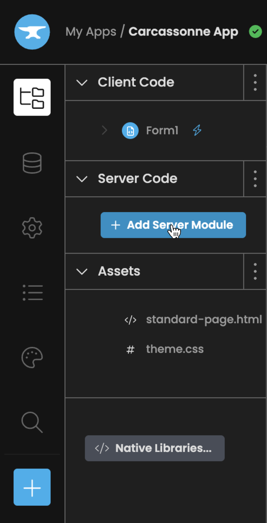 We now need to create a new Anvil app, but we don’t actually need a front-end for it. Slack will be our front end, and everything we write for our Slack app will be in Server code in our Anvil app. As we step through this tutorial, we will build a temporary front-end for our Anvil app so that we can call our server functions and test out our app’s functionality before it’s completely finished.