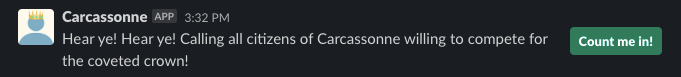 "text": "Here ye! Here ye! Calling all citizens of Carcassonne willing to compete for the coveted crown!"