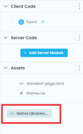 Click the copy icon to the right of the JavaScript file and paste it into your app’s Native Libraries section, then repeat the process for the CSS file. You’ll end up with something like this: